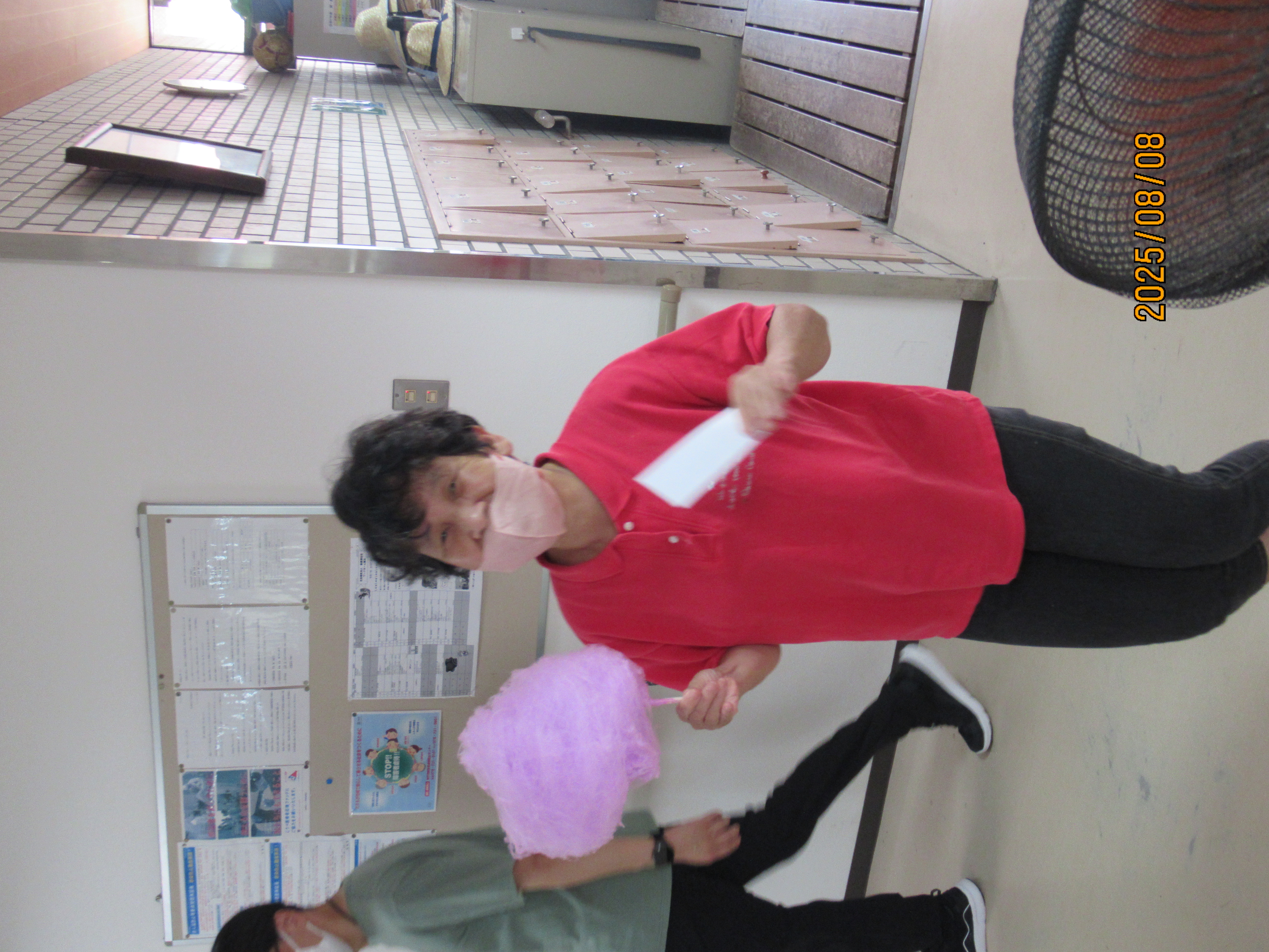 お昼ご飯を食べた後は綿菓子の提供がありました。大きな綿菓子を持ってみなさん喜んで食べておられました!
