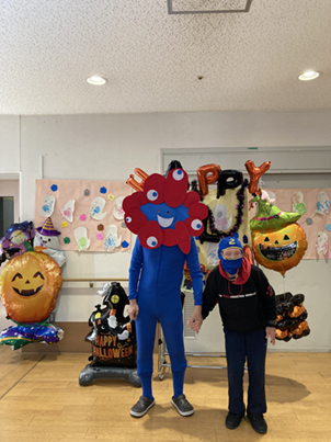 10月のハロウィンイベントに、万博で大活躍のミャクミャクが遊びに来てくれたので一緒に写真を撮ったり、