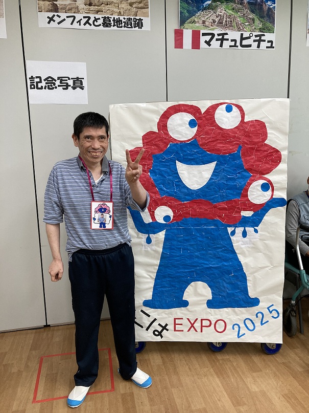 document.write (' - 今年は万博開催された年ということで、夏祭りにとこはも一日限りの「とこは万博」を開催しました。万博のマスコットキャラクターミャクミャクと記念撮影をしたり、真実の口に手を入れると色んな音が鳴ったりして楽しみました。お昼は海外のメニューが勢揃い、おやつはかき氷で皆さんおいしく頂きました。