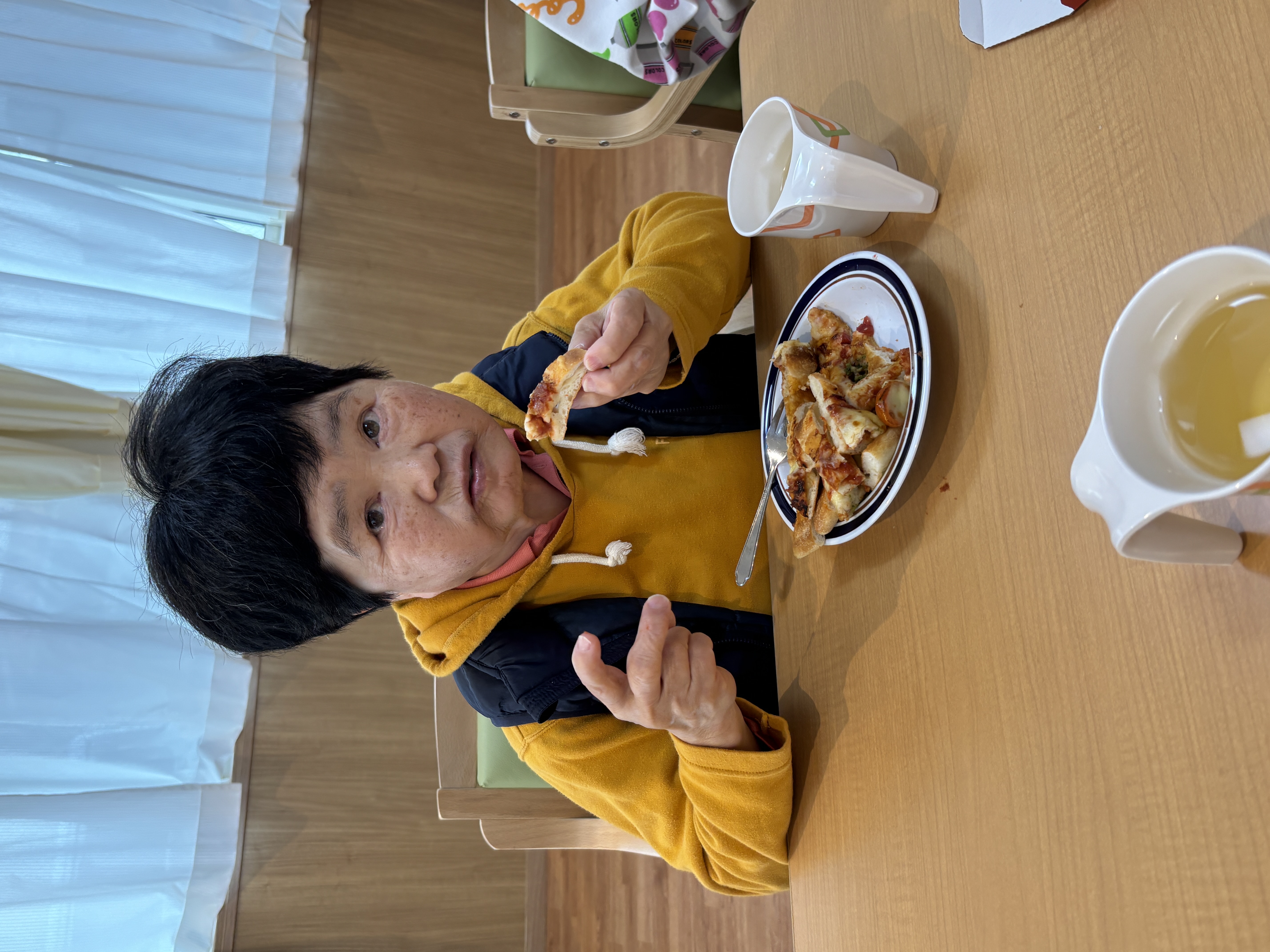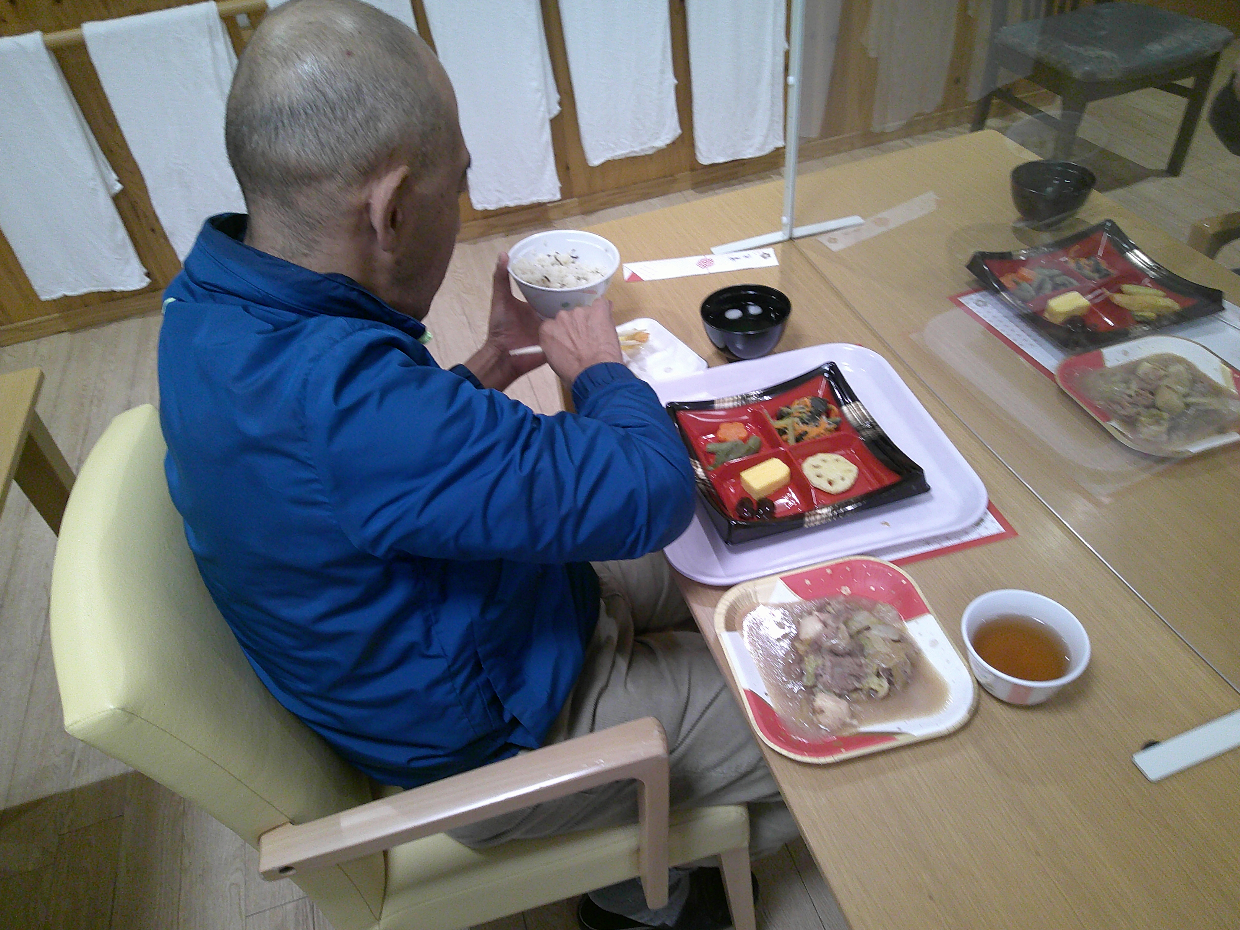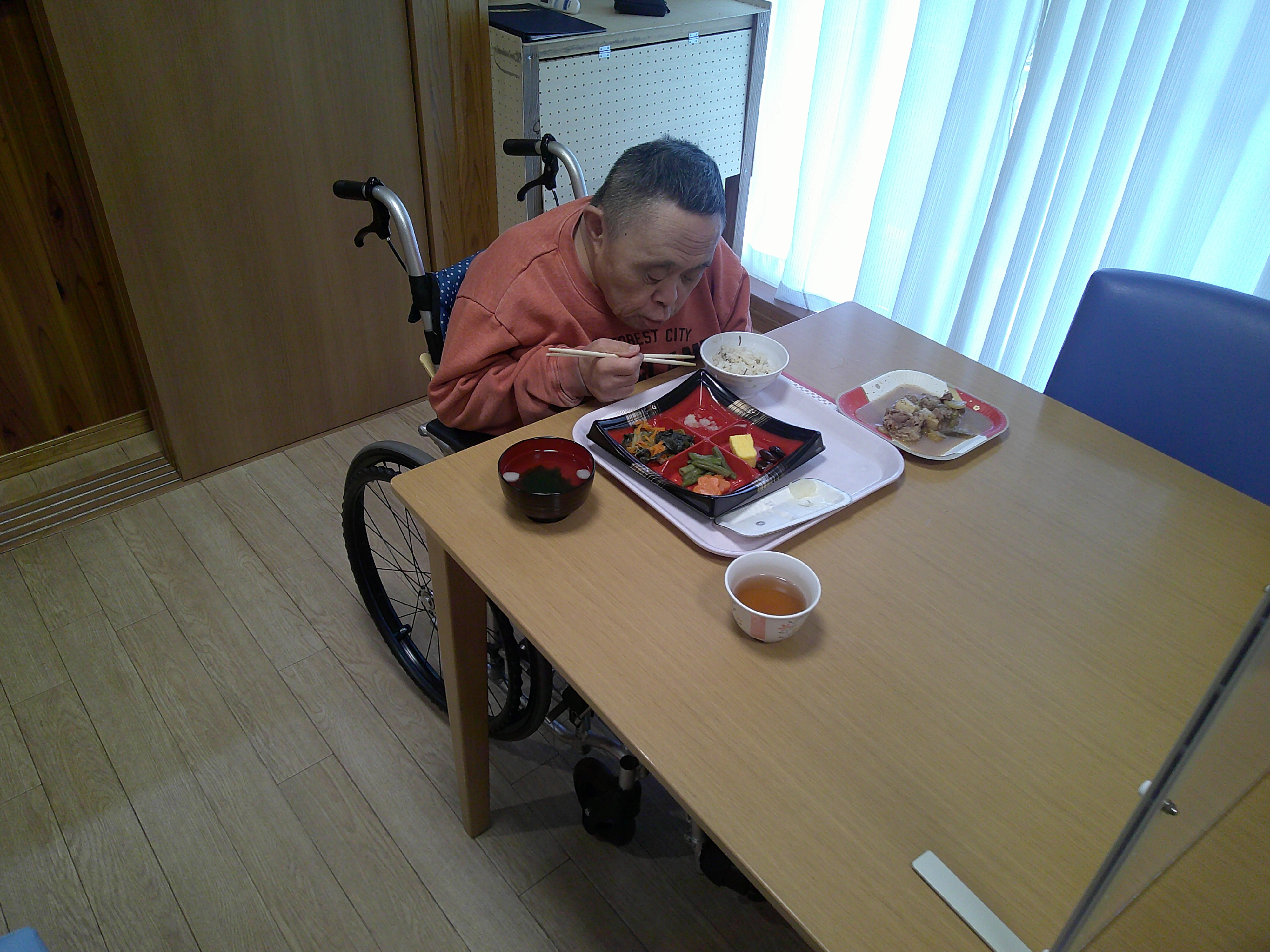 document.write (' - 年末には宅配ピザを皆さんで囲み、賑やかに1年を振りかえられました。元旦の昼食にはおせち料理が振舞われました。今年はおせち料理専用のお皿に盛り付け、新年を祝いました。また初詣にはドライブで西区の住吉神社に出掛けました。今年はどんな年になるかな?いろいろな思いを込めて参拝されました。