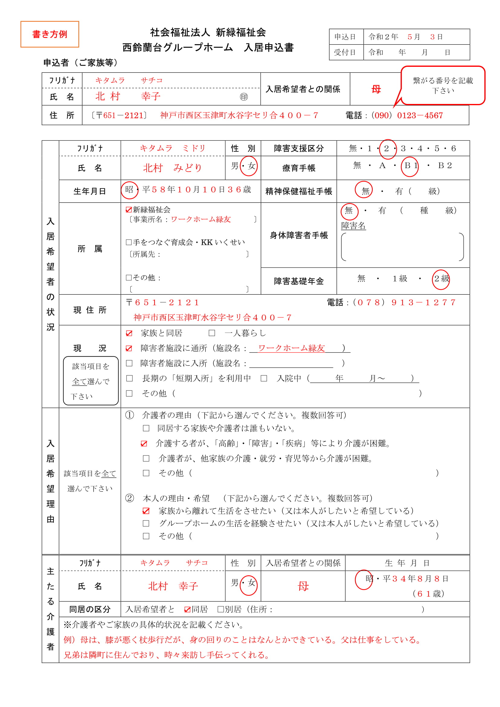 ~西鈴蘭台グループホーム(仮称)~③記入例