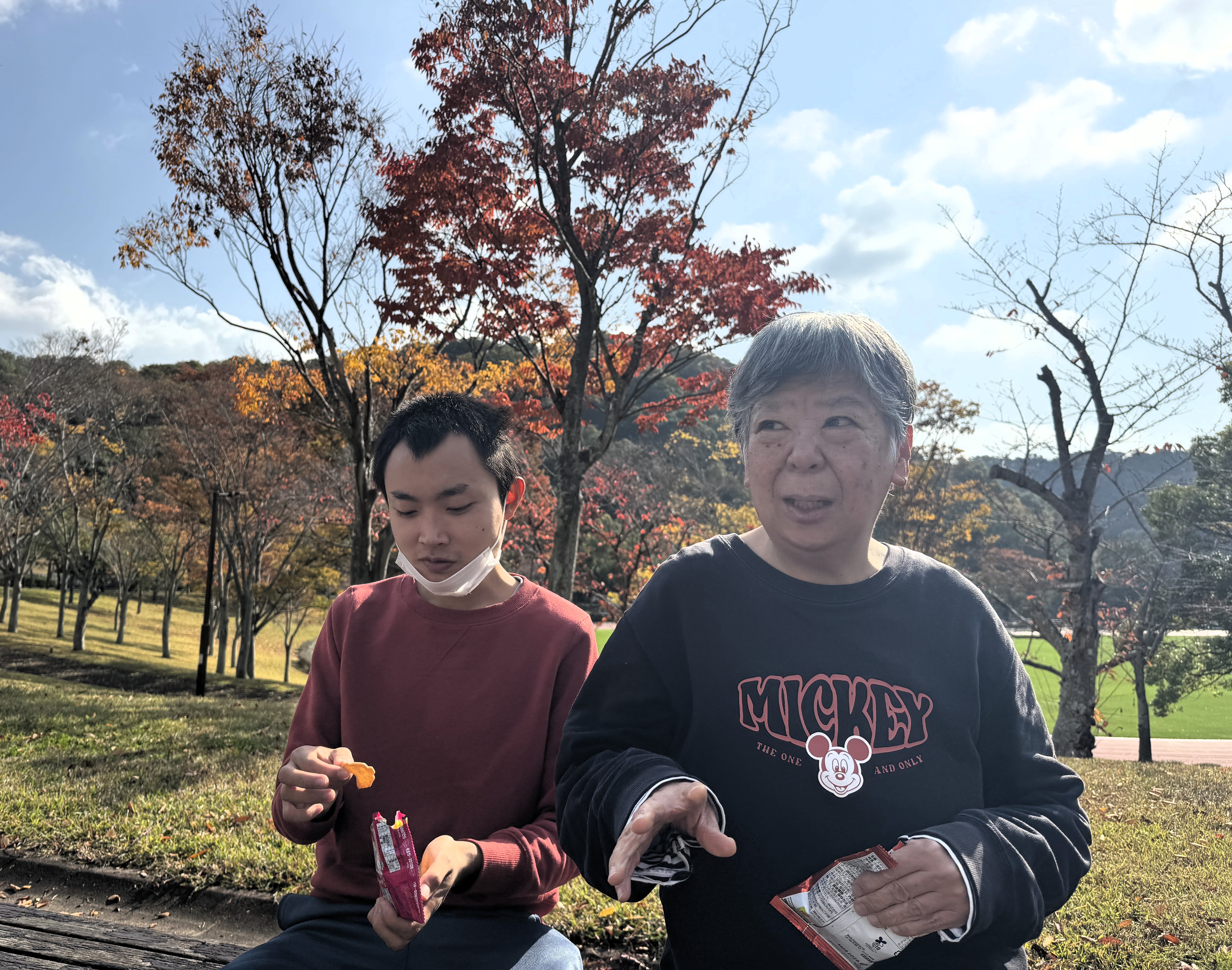 みんなでワイワイとお菓子を食べながら紅葉を観て、のんびりとした秋の一日を過ごしました。 ');