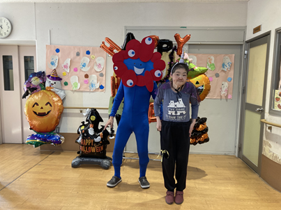 10月のハロウィンイベントに、万博で大活躍のミャクミャクが遊びに来てくれたので一緒に写真を撮ったり、