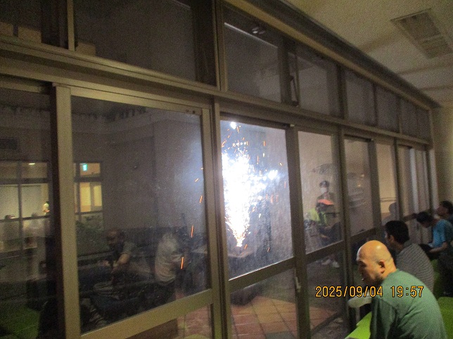 9月の始めには夏の締めくくりとして花火大会を行いました。あいにくの雨でしたがそれに負けない花火の輝きに皆さん大盛り上がりでした。 ');