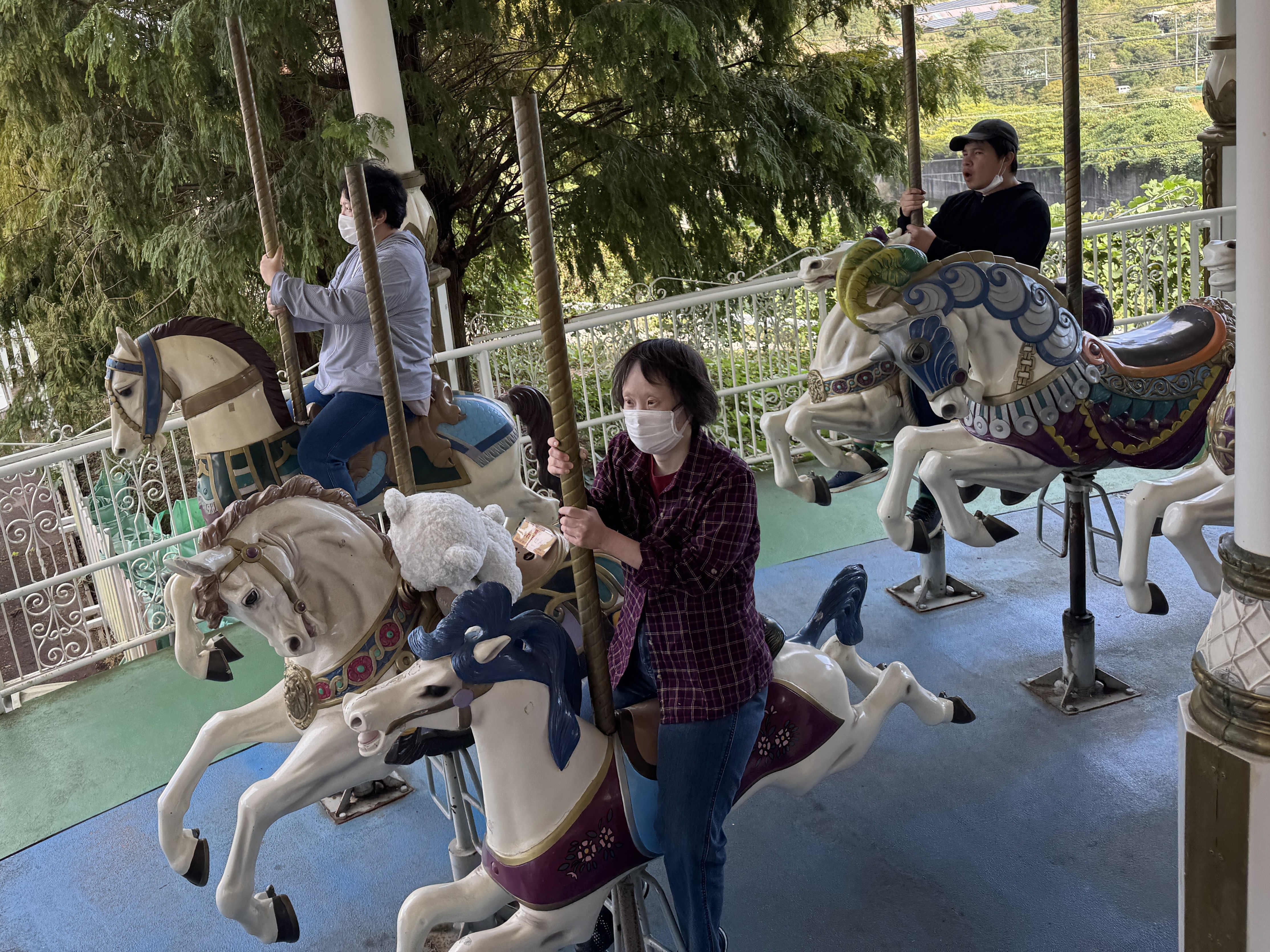 昼食後メリーゴーランドや船の乗り物も乗って楽しみました。