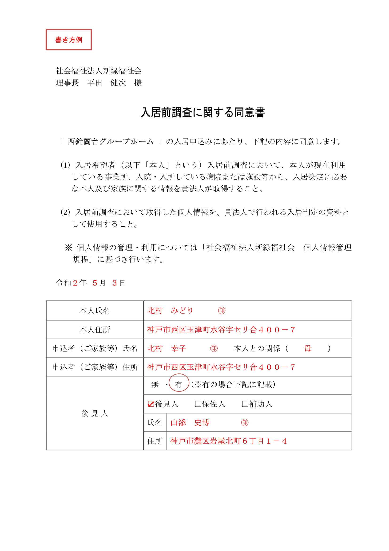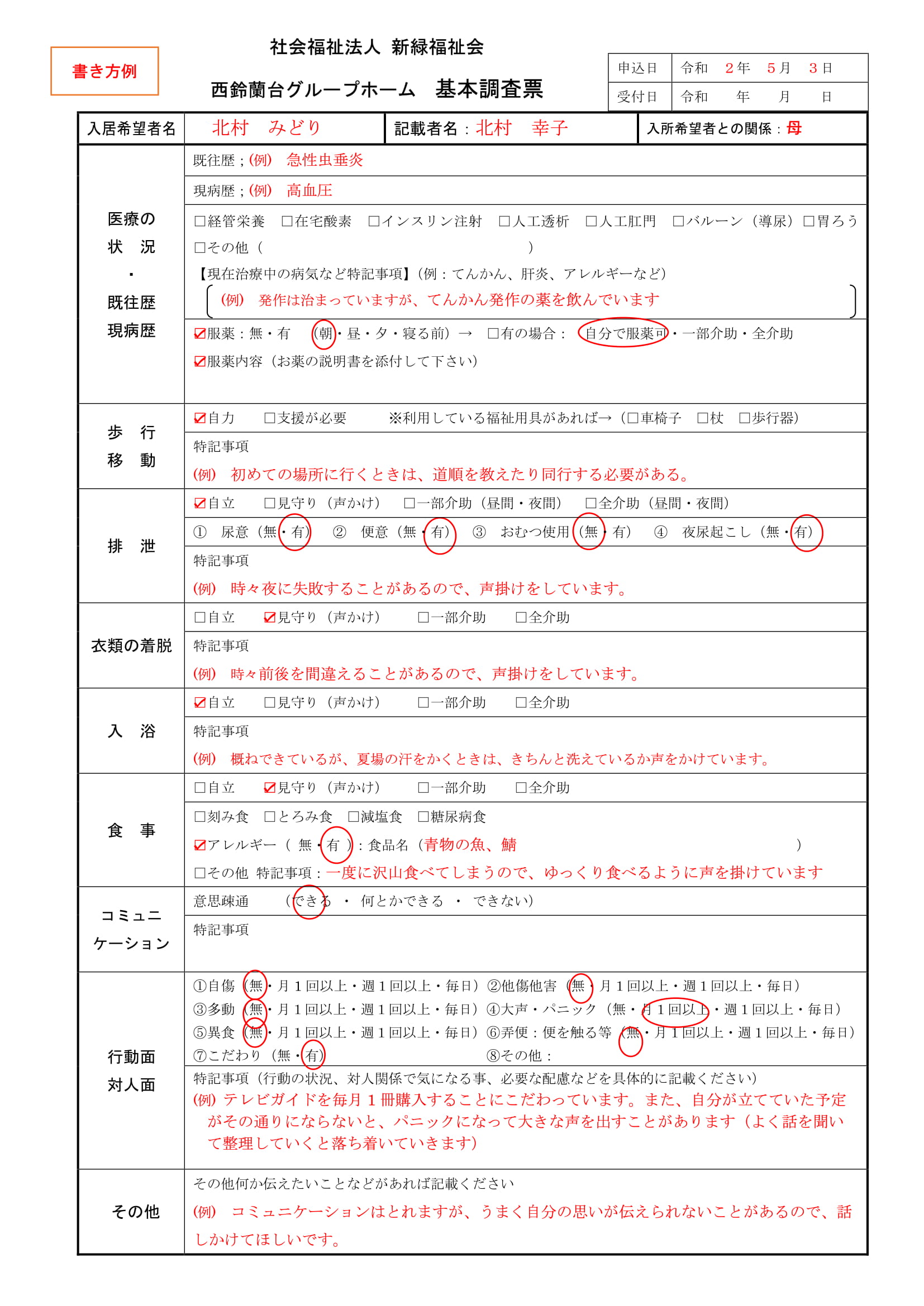~西鈴蘭台グループホーム(仮称)~③記入例